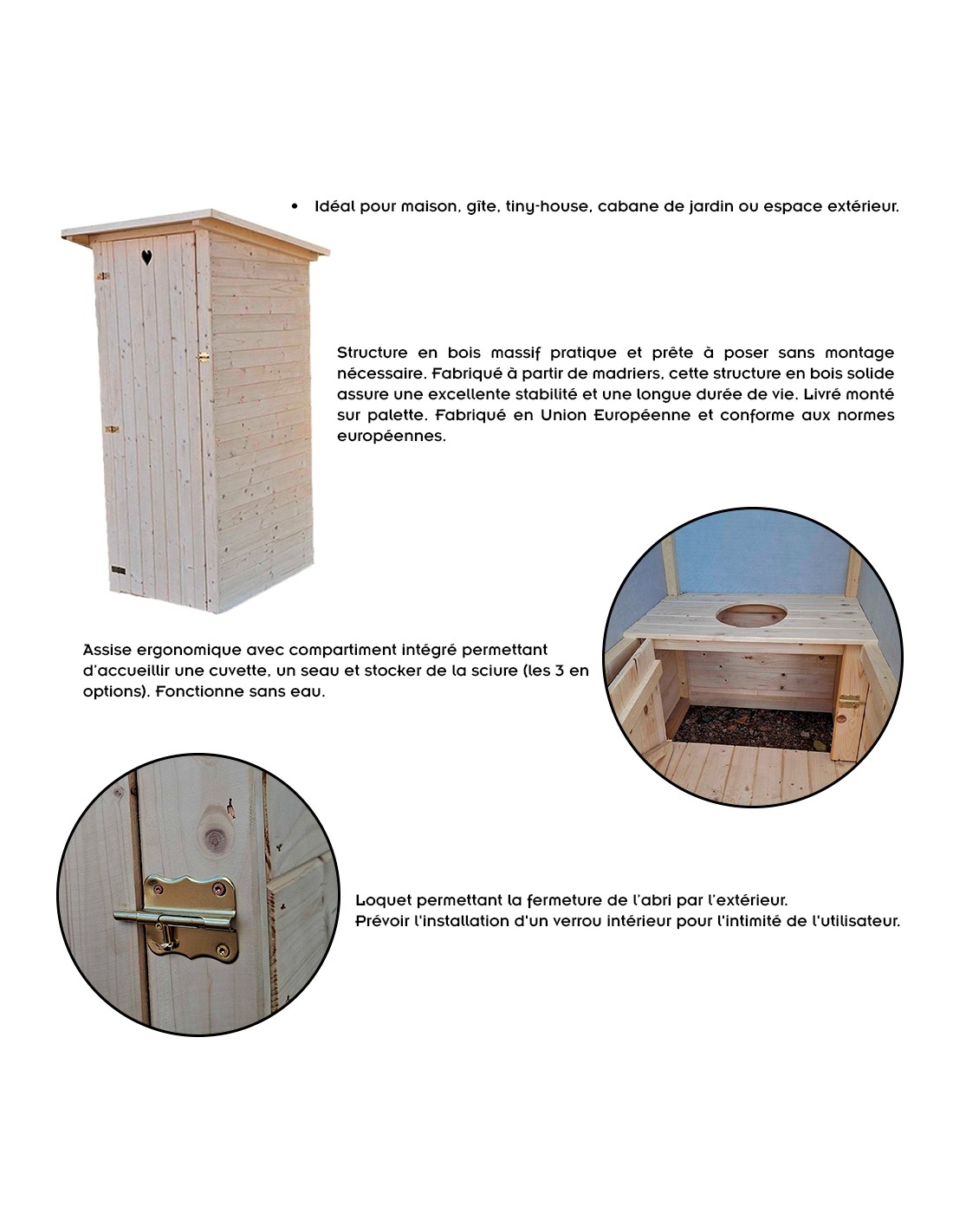 - Cabane pour toilettes sèches en bois massif, conçu pour un mode de vie respectueux de l’environnement.