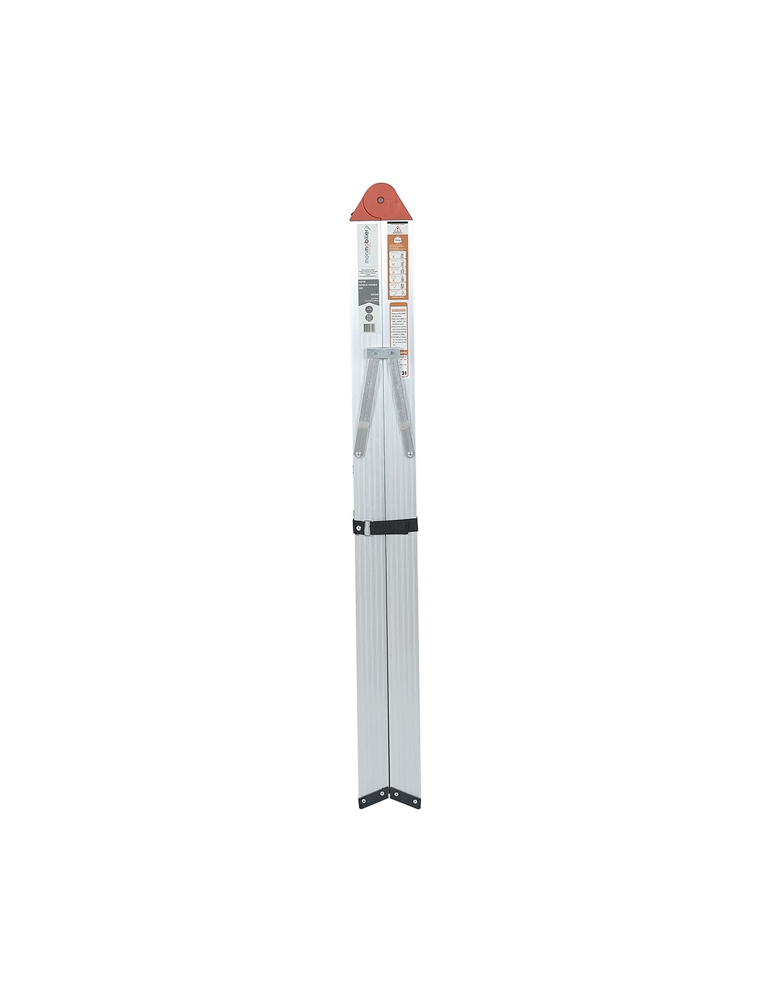 Echelle double en aluminium. Pliable et compacte, elle se range facilement.