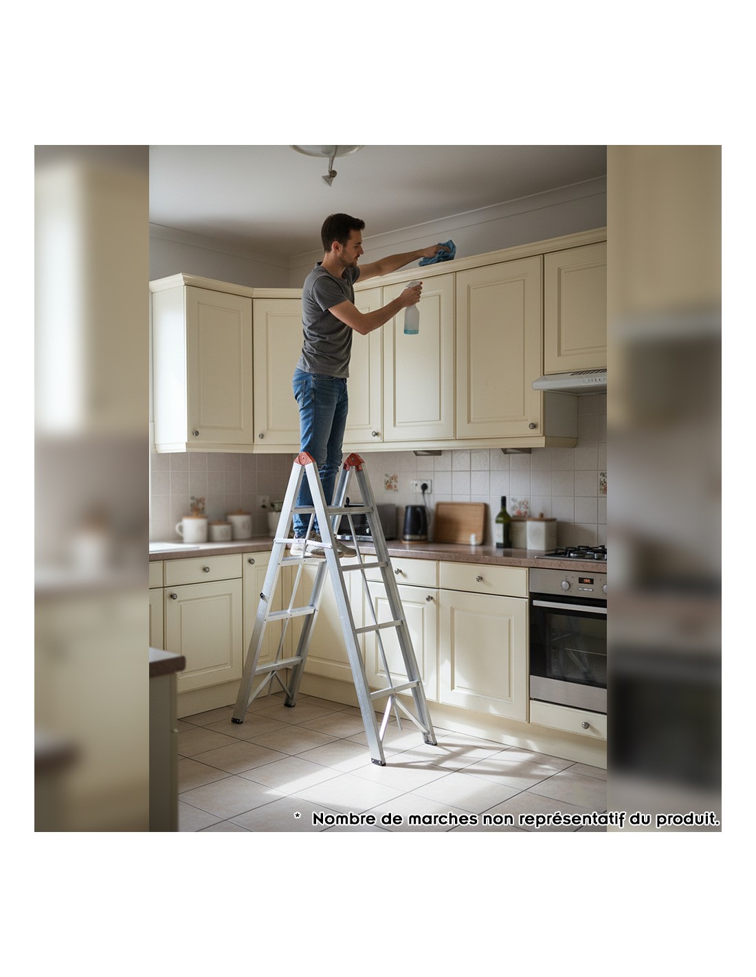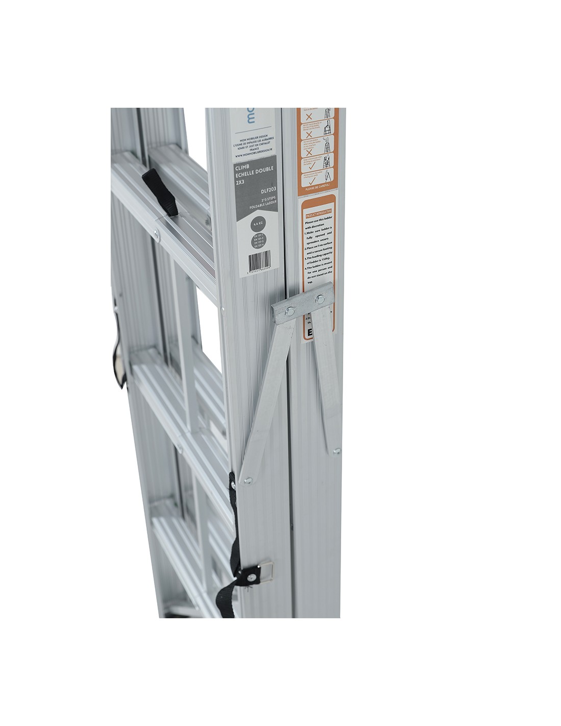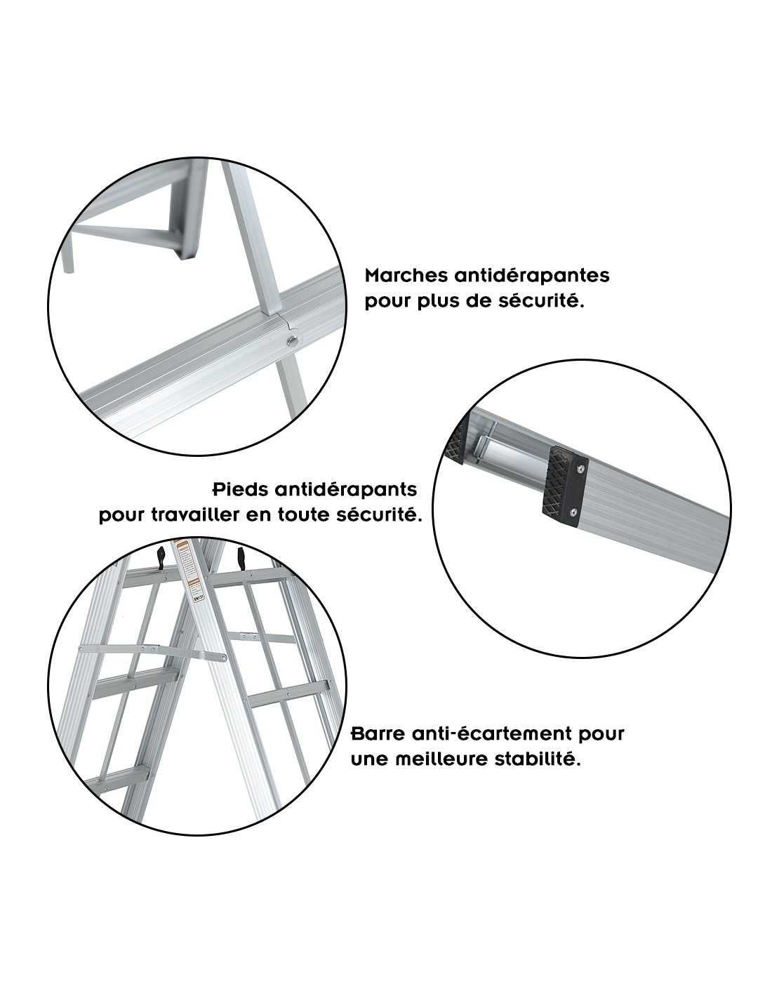 Conforme aux normes EN-131. Poids maximum supporté : 150 kg.