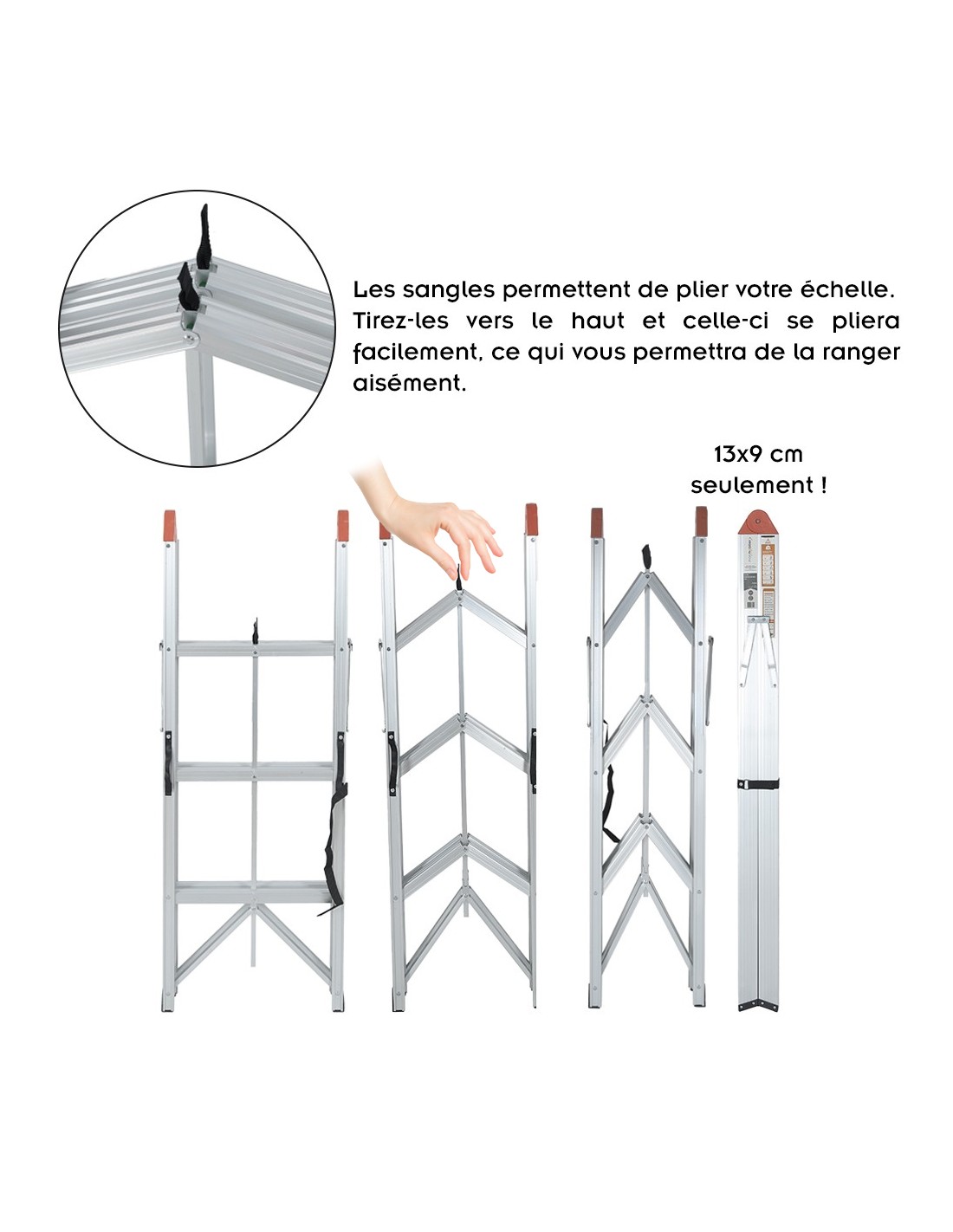Profondeur échelle pliée : 9 cm.