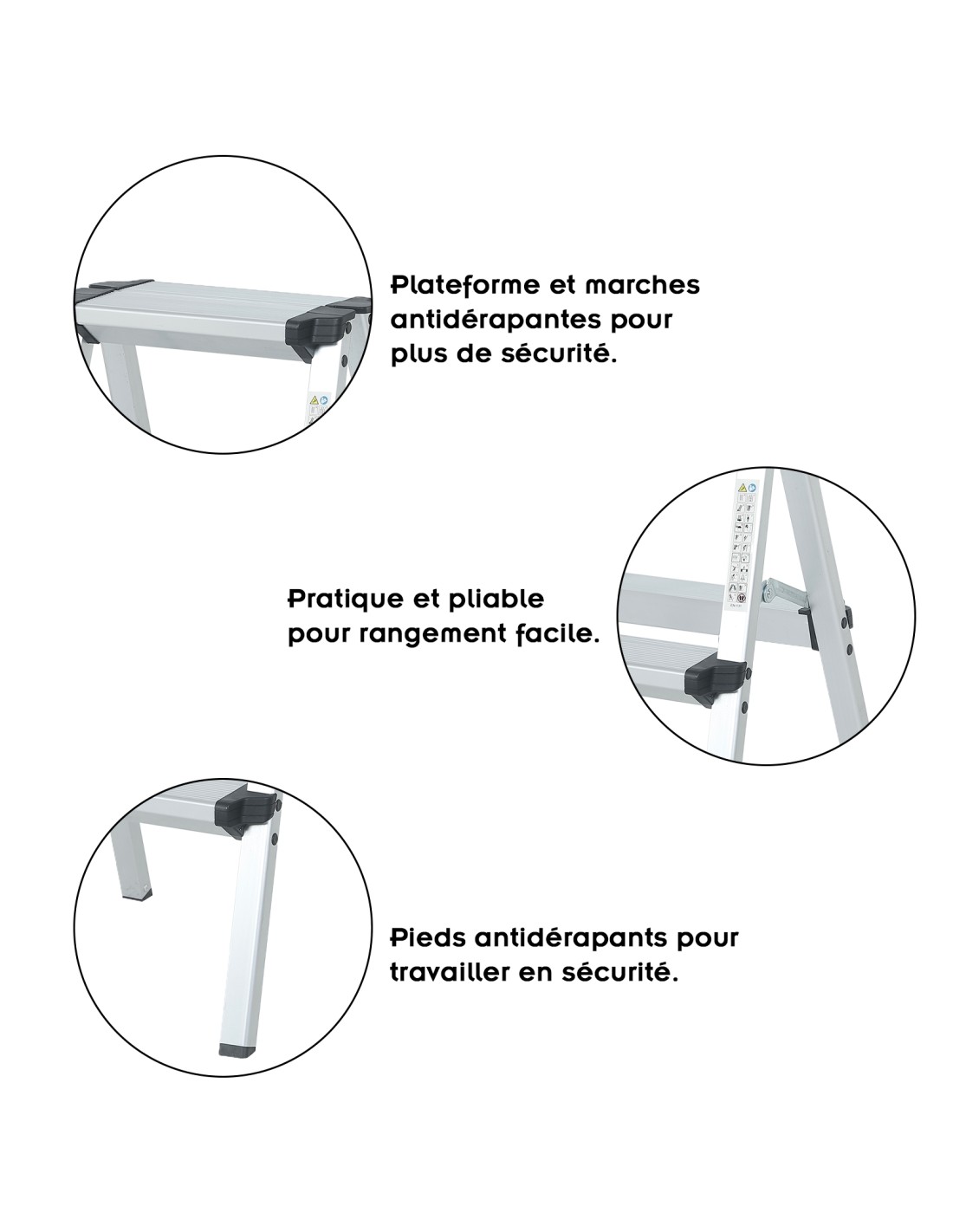 Conçu pour vous offrir une stabilité optimale, il dispose de marches rainurées antidérapantes pour votre sécurité.