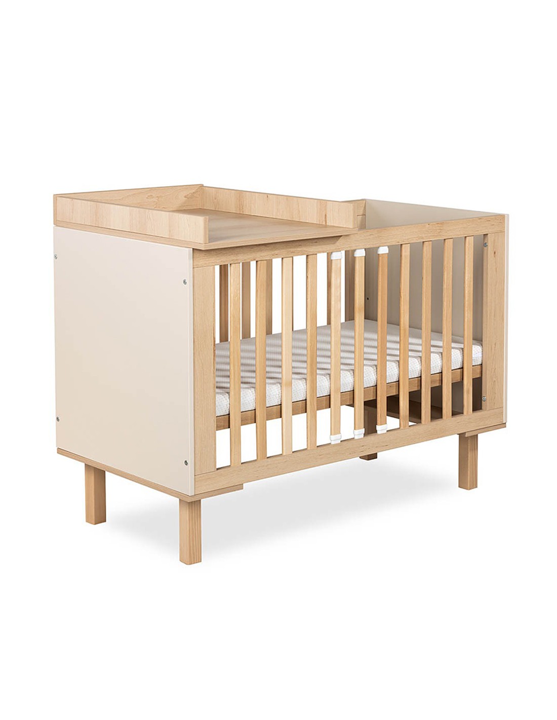 De plus, un côté est entièrement remplaçable par une barrière de sécurité (incluse) . Excellente transition avant que l'enfant dorme dans un lit sans barreaux, cette barrière le protège des chutes pendant son sommeil.