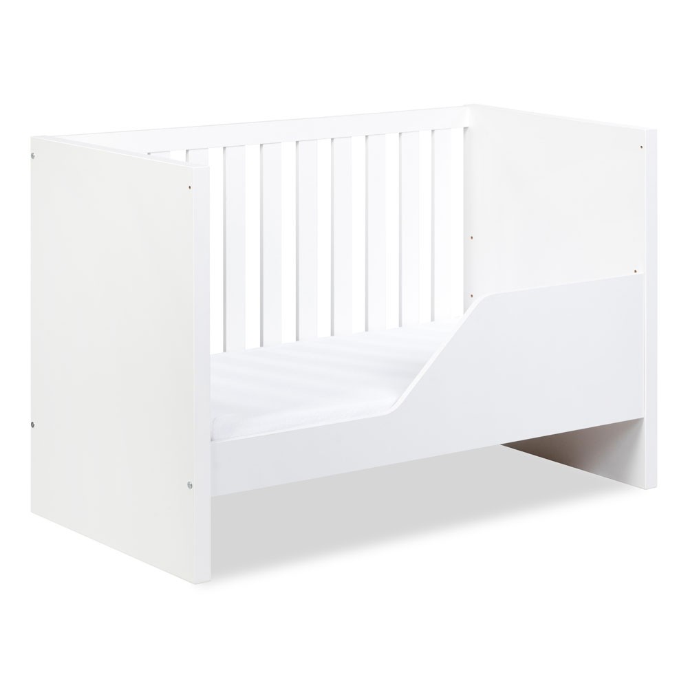 Ce lit est évolutif et suit la croissance de votre enfant. Son sommier à lattes se règle sur 3 hauteurs différentes afin de s’adapter à l’âge de l’enfant. 2 barreaux sont amovibles afin de faciliter l'entrée et la sortie de l'enfant. De plus, un côté est entièrement amovible et est remplaçable par une barrière de sécurité.