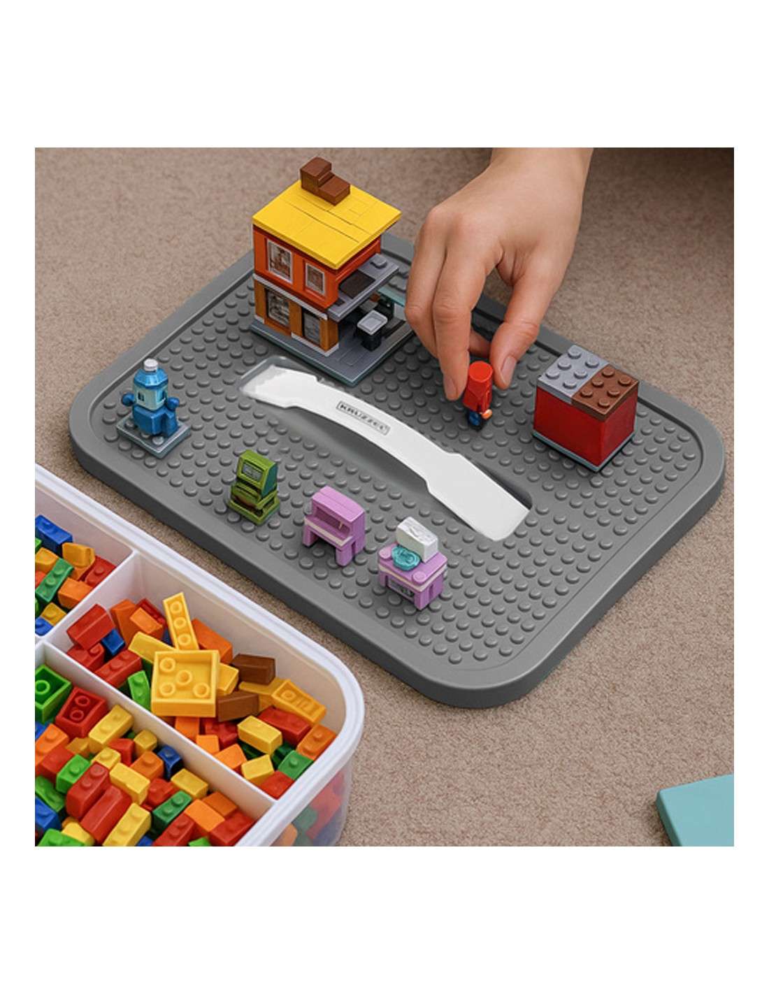 Votre enfant peut donc construire directement sur la boîte, ce qui transforme cet organisateur en jouet mobile. C'est une excellente solution pour les voyages !