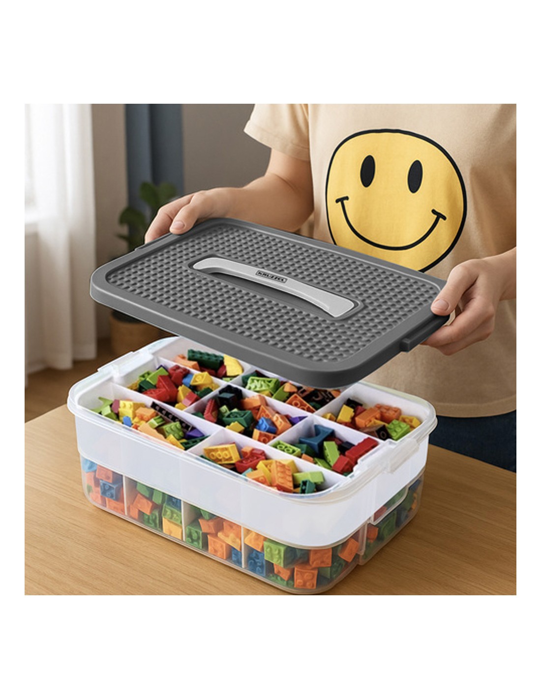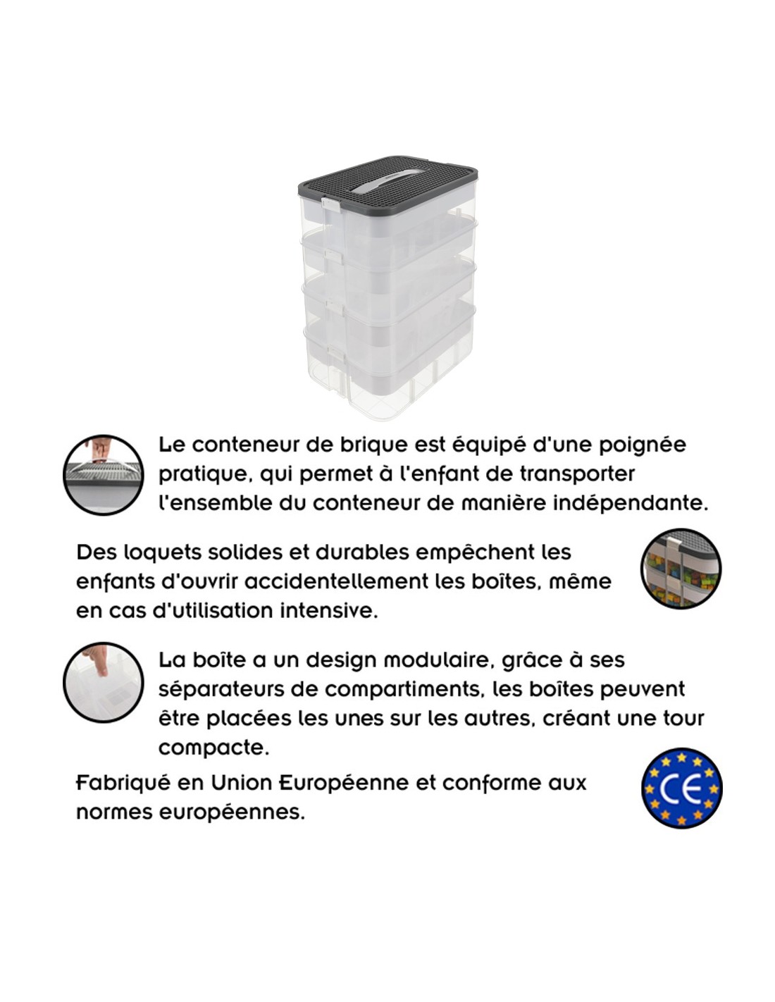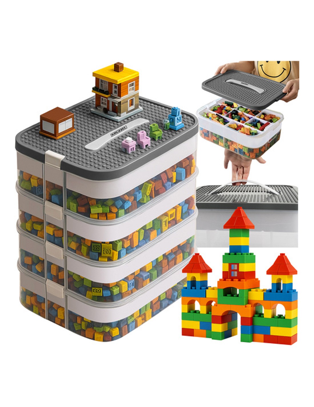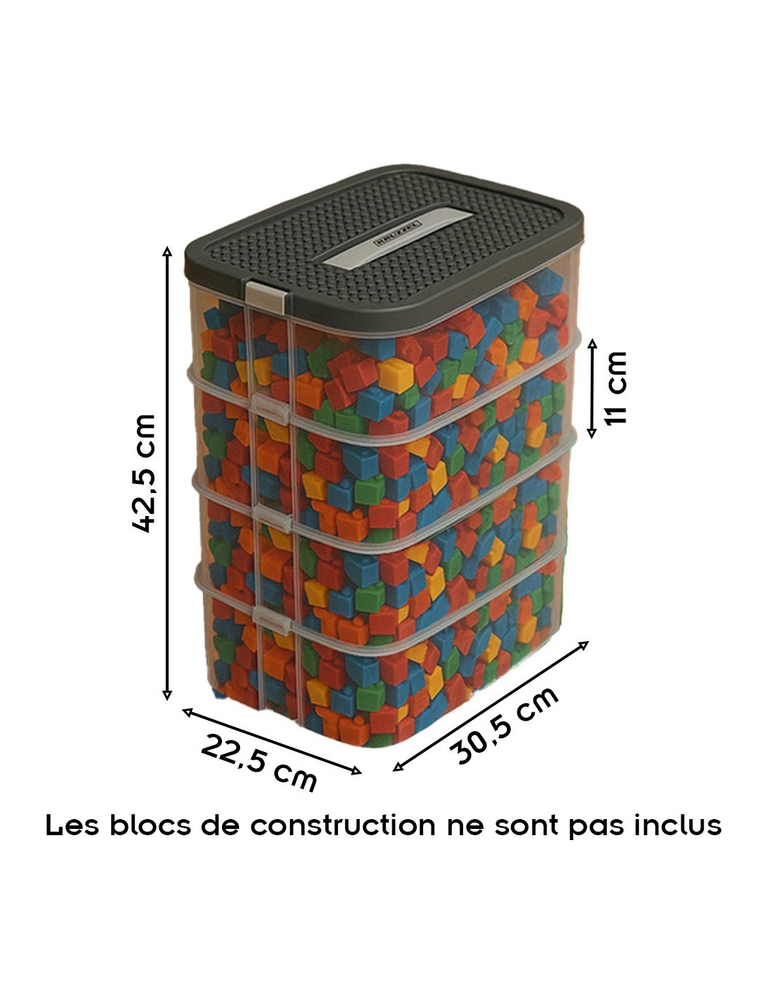 Cette boîte de rangement se compose de 4 niveaux, qui offrent un grand espace pour ranger des briques de construction, des jouets ou des accessoires.