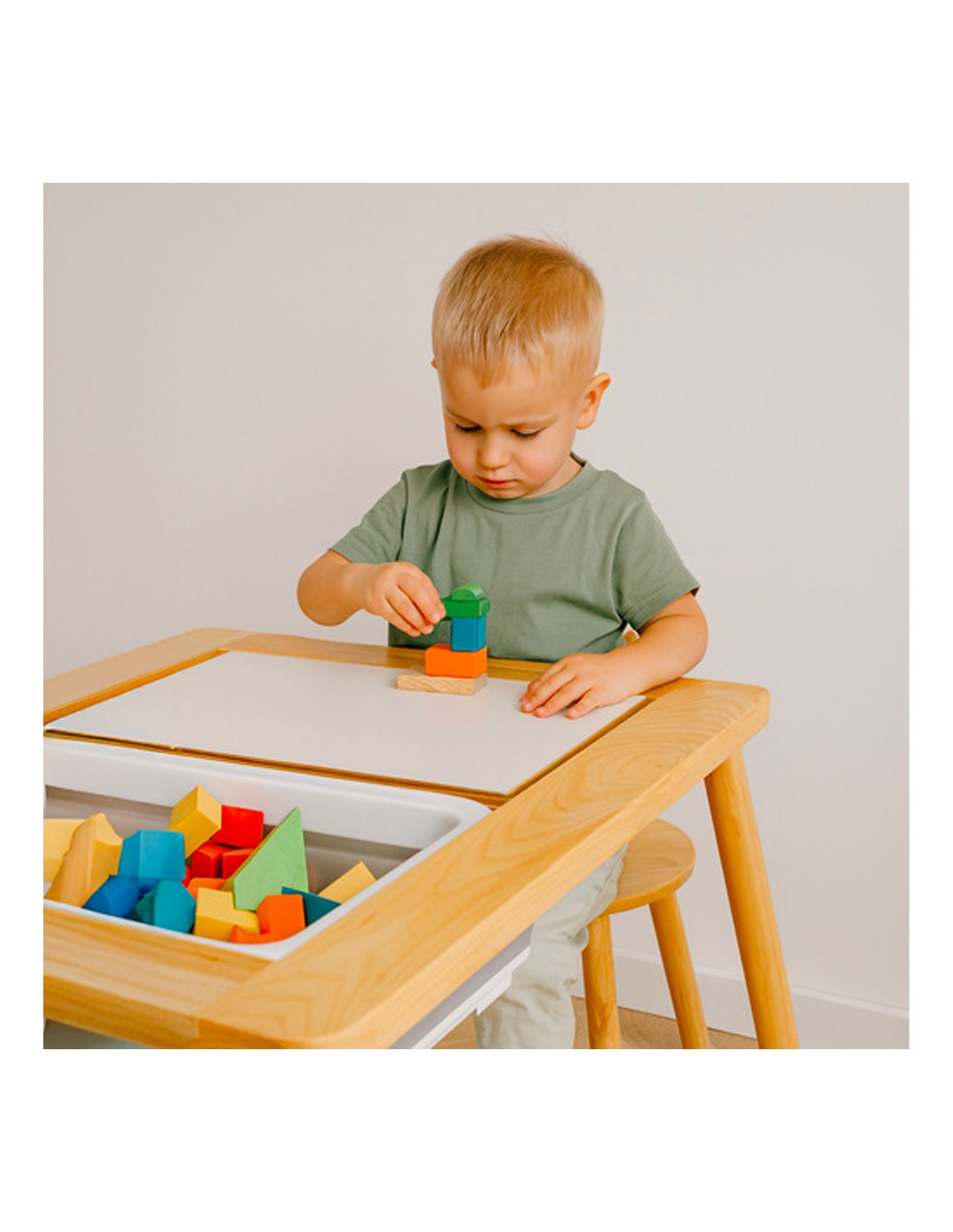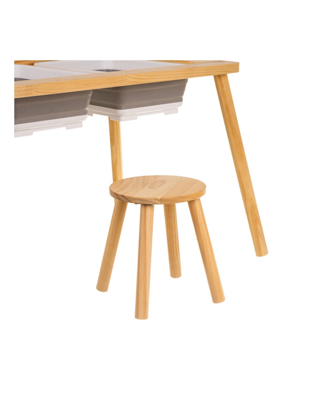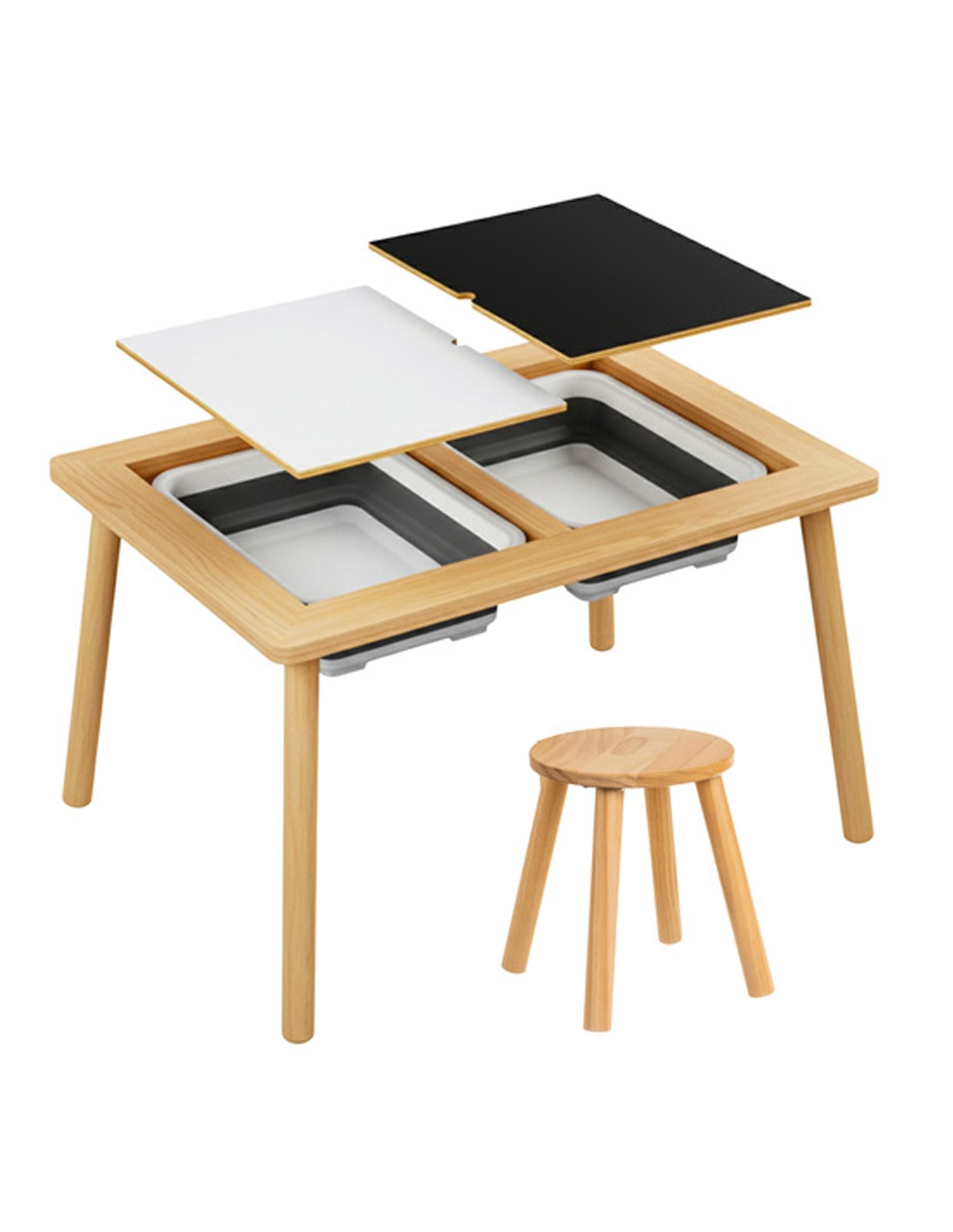 - Table éducative en bois de hêtre avec bacs de rangement amovibles et tabouret pour enfants dès 3 ans