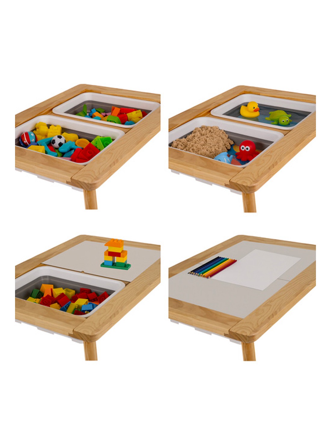 - Elle peut être utilisée comme bac à sable, table à eau, bacs de rangement, bacs à blocs de construction, pour dessiner...
