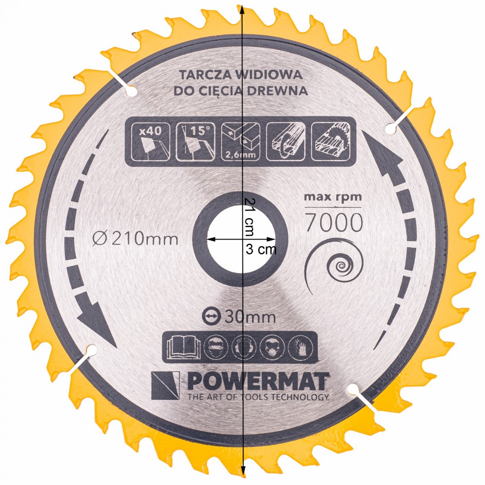 - Angle des dents +15° - géométrie des dents : alternée ATB - vitesse max. 7000 tours/ minutes.
