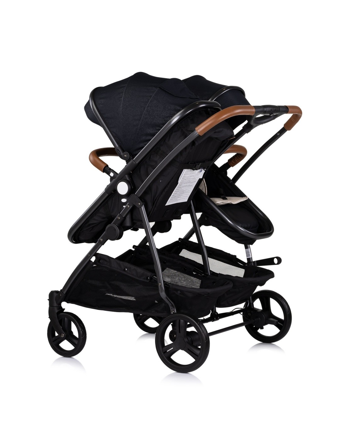 Cette poussette double et évolutive convient aux jumeaux et aux enfants d'âges rapprochés.